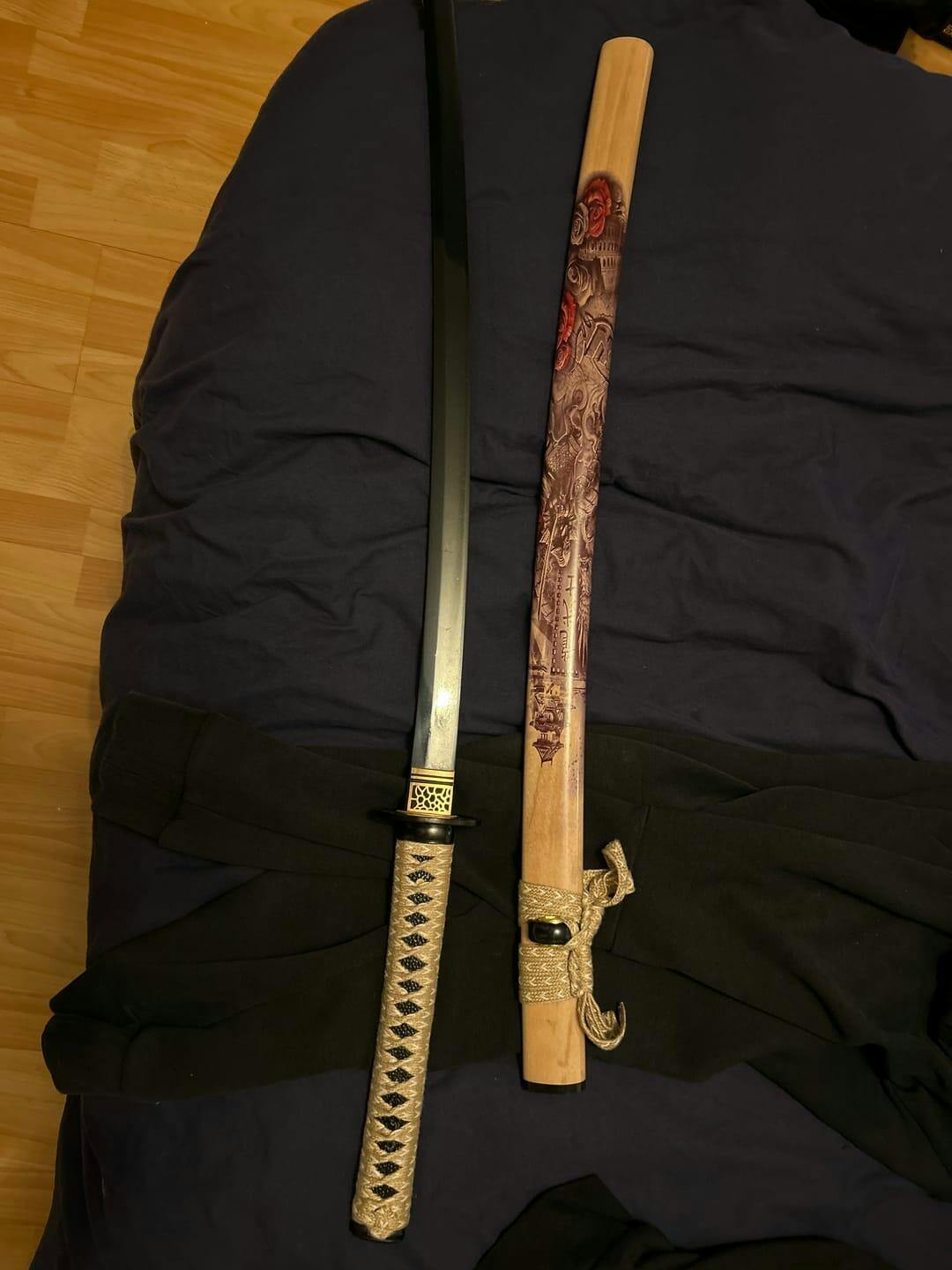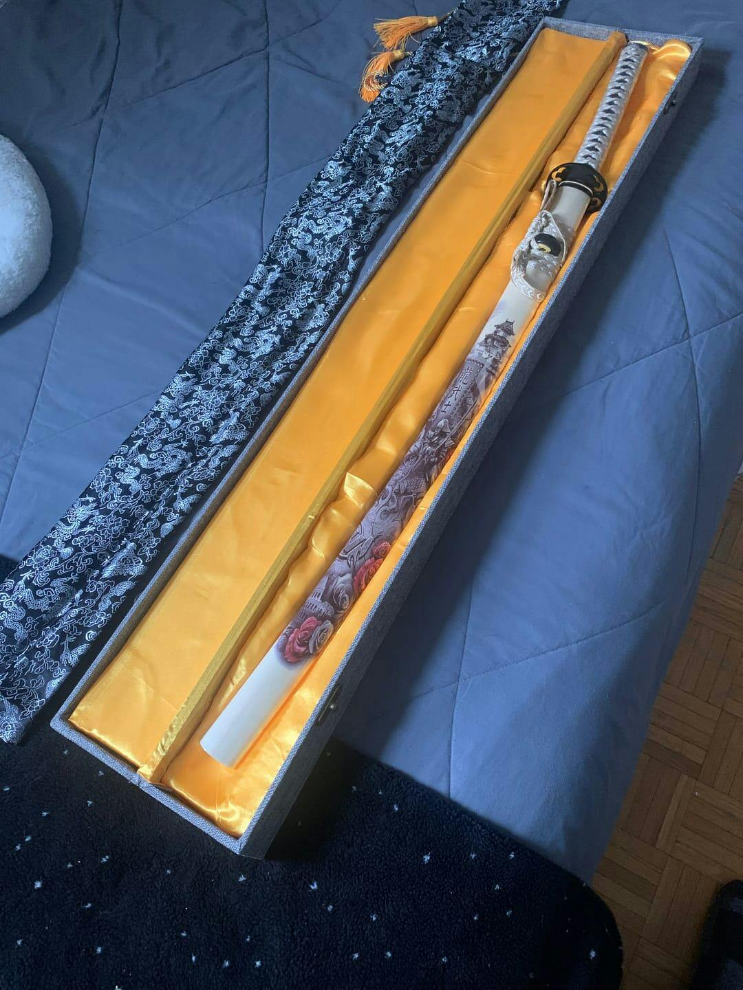 Katana Jin är perfekt för nybörjare som vill upptäcka Katana med en liten budget. Den är mer lämpad för dekoration och har ett svart blad och en skida som representerar Edo-perioden i Japan.
